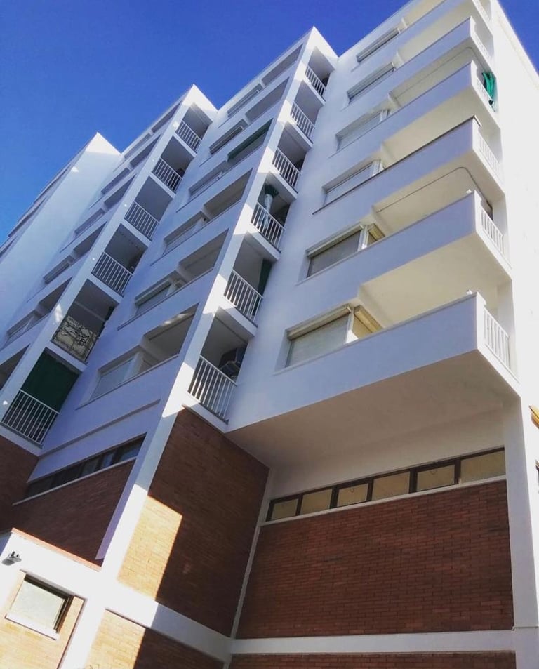 Rehabilitación integral del edificio con cambios de barandillas de aluminio.